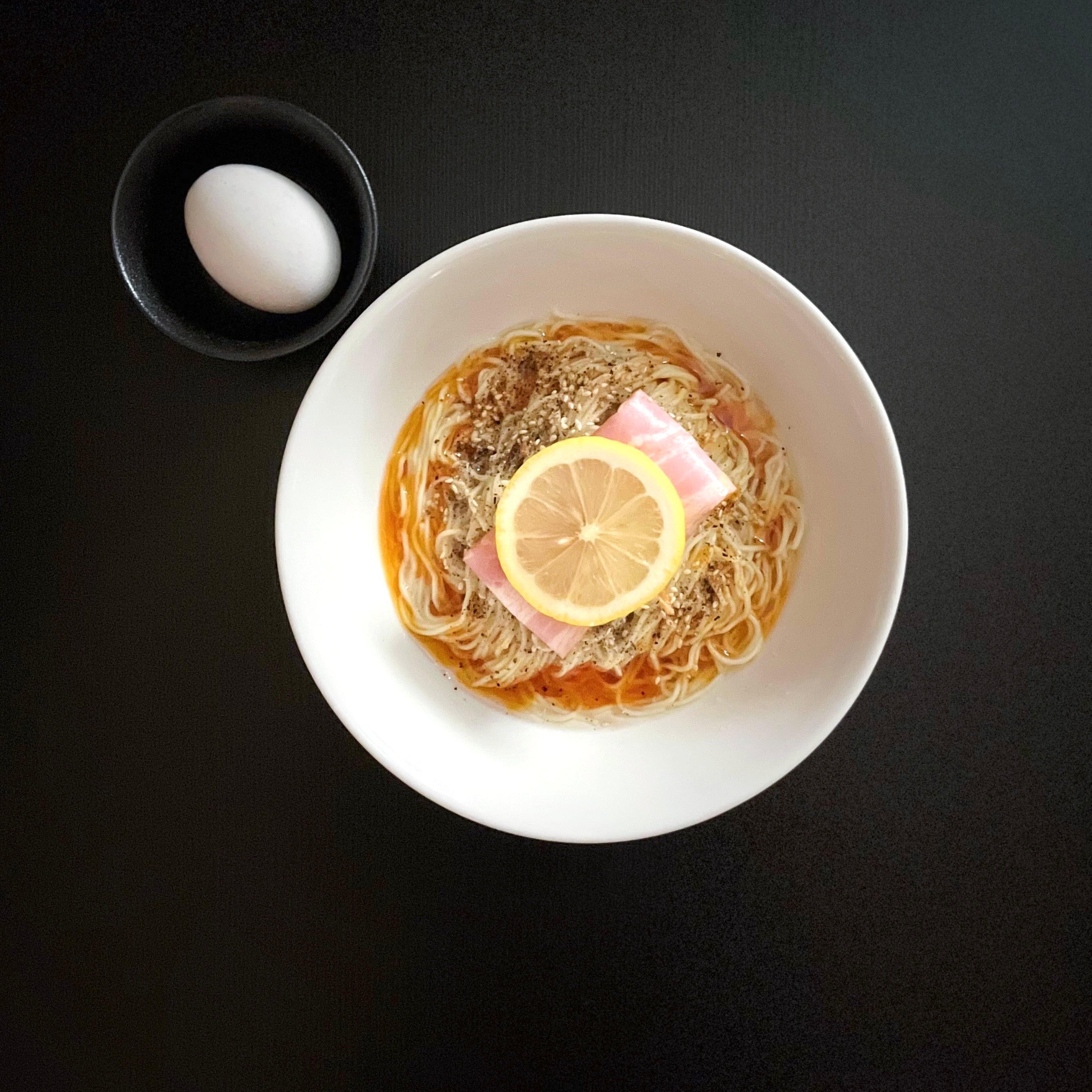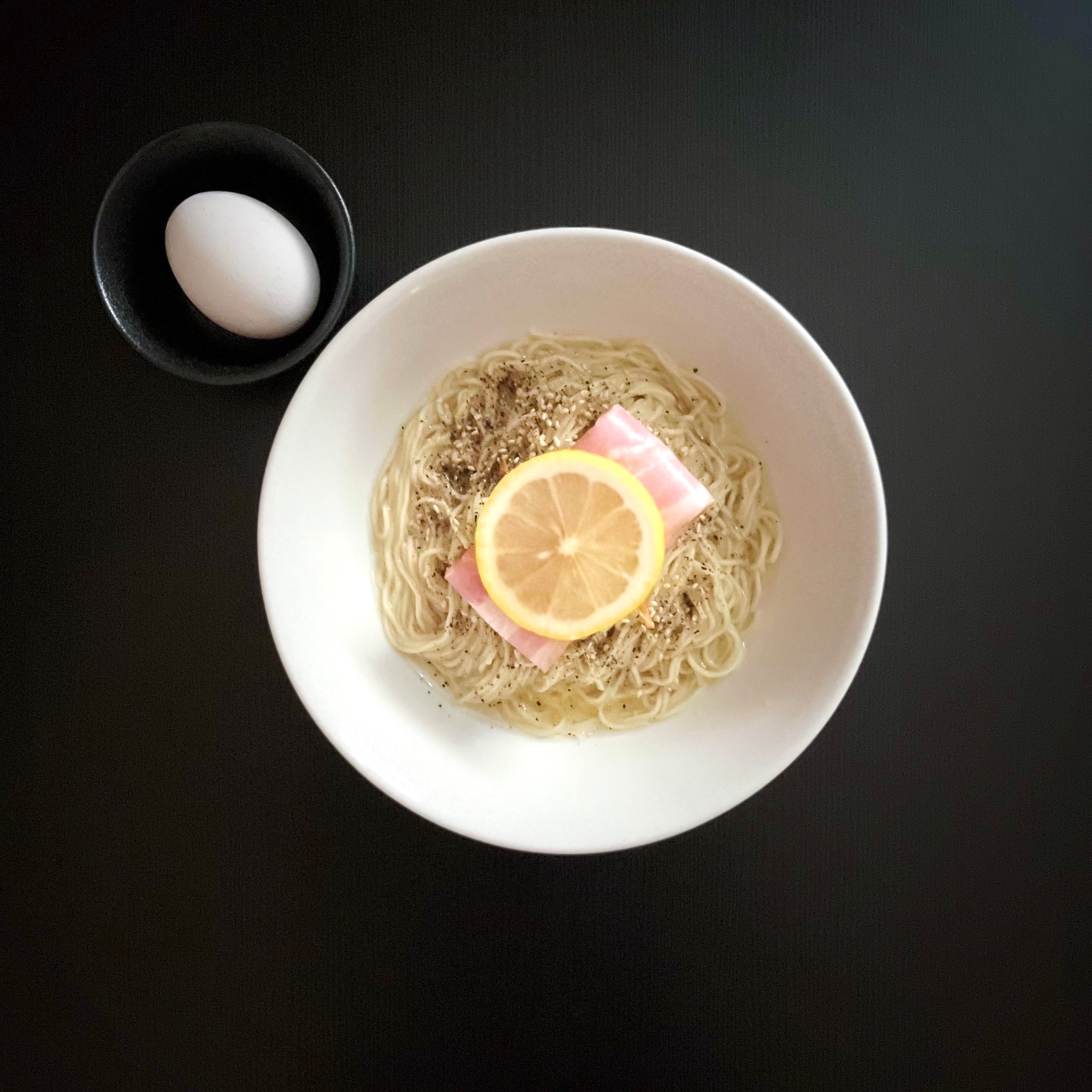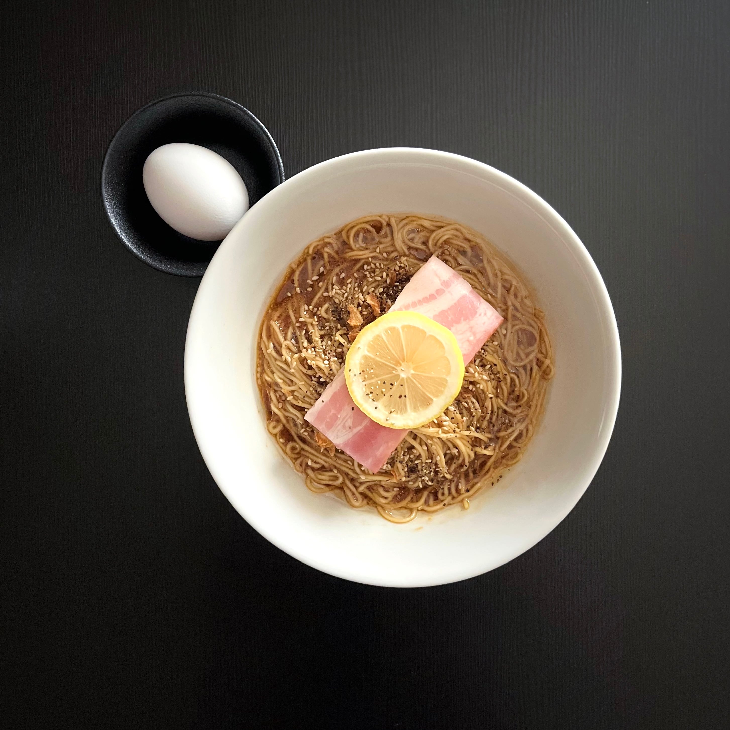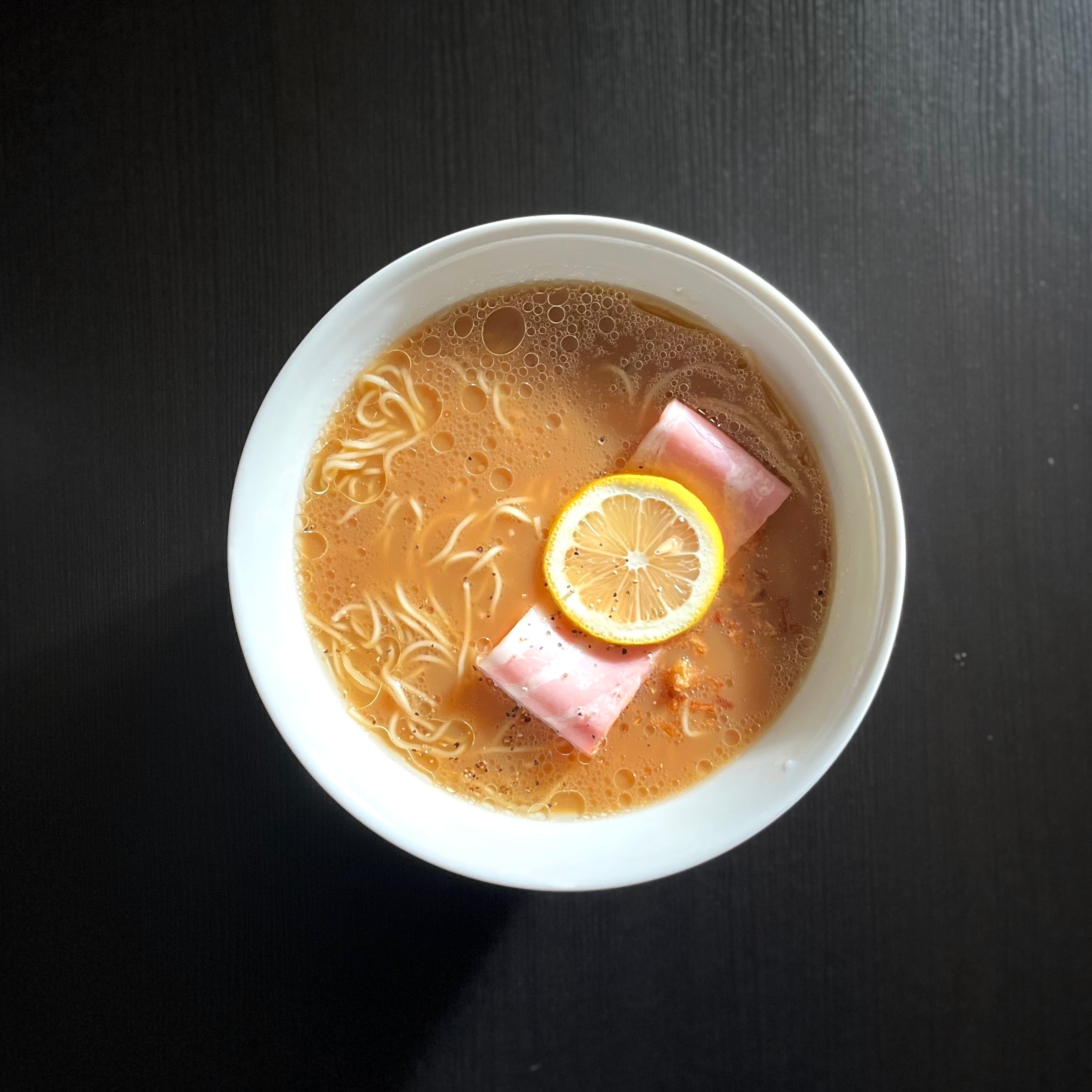 豚肉と香味野菜、魚の節から煮出したシンプルな出汁に、豆乳を使用した塩ダレを合わせたまろやかなスープ。程よい塩味とコク、レモンがほんのり香る優しい一杯。